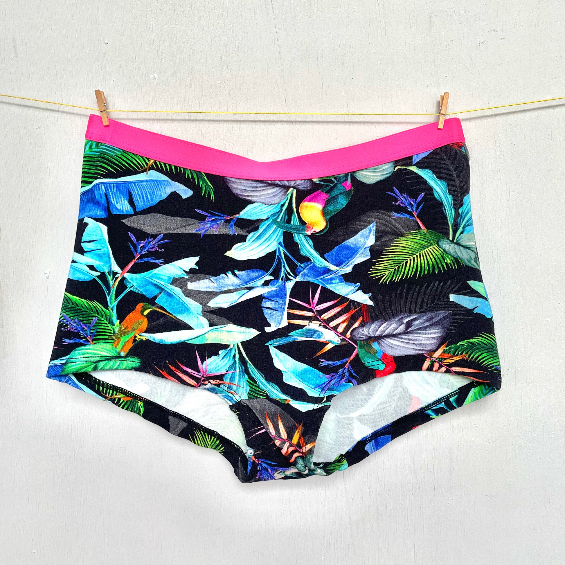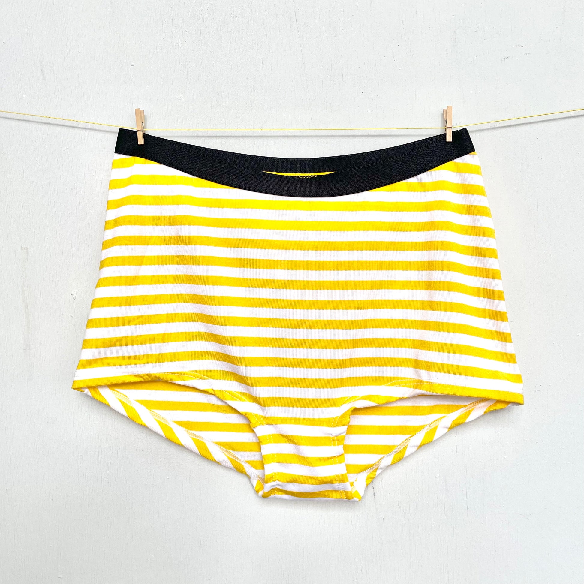 2 Calzones tiro alto 97%algodón 3% spandex talla L (flores y rayas amarillas)