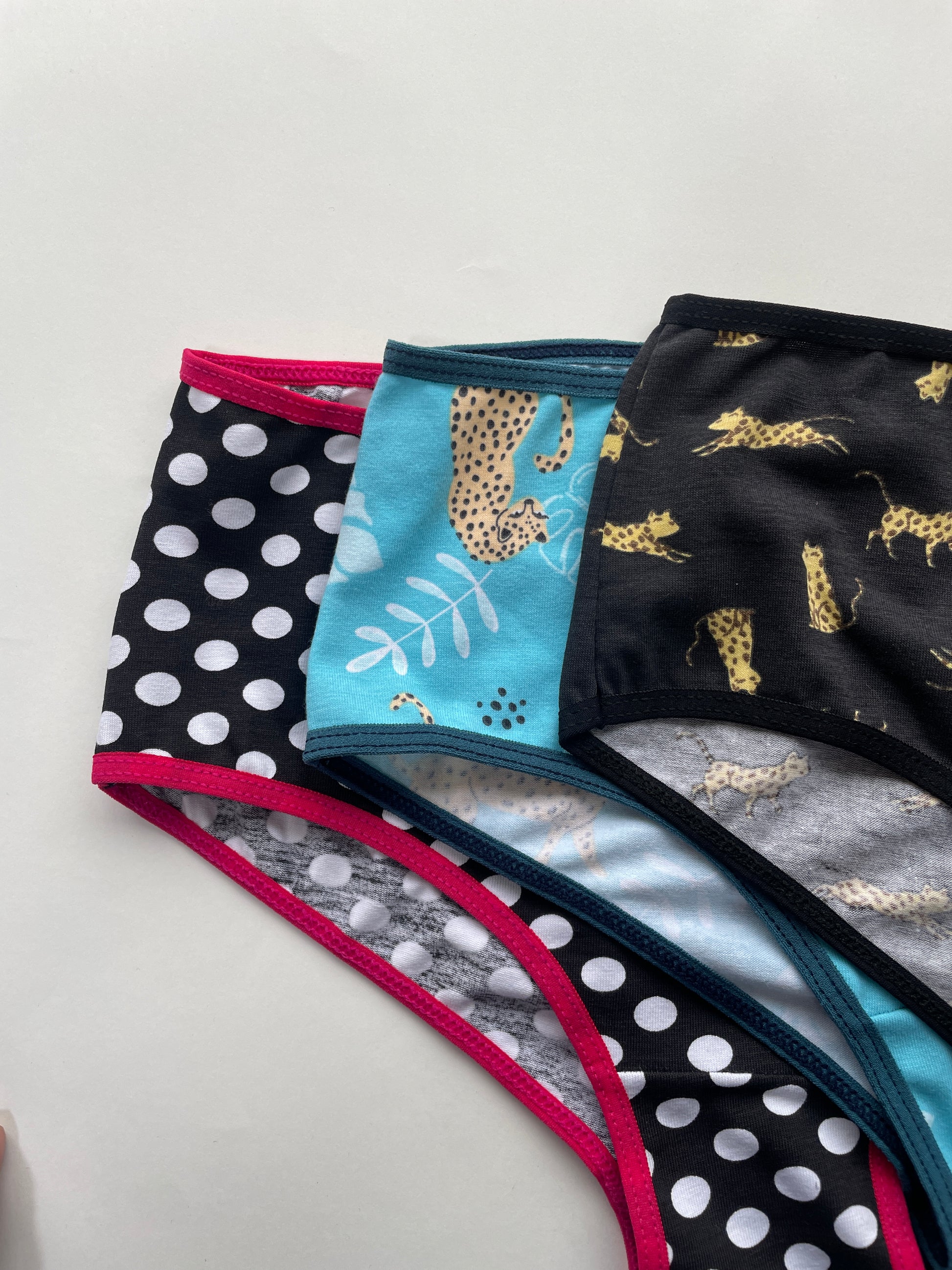 3 Calzones tiro normal 97%algodón 3% spandex (pepas tigres y leopardos)